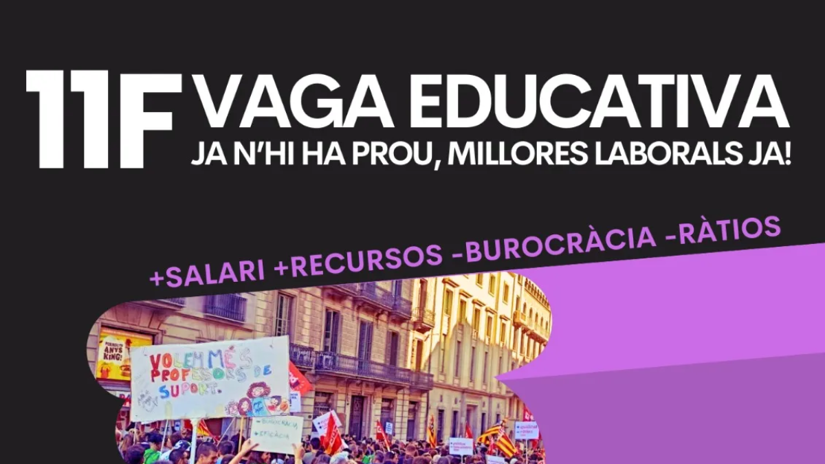 Dentro del ciclo de movilizaciones prometido por el sector antes de cerrar el año 2025, la mesa sindical ha convocado una huelga de todo el personal docente de Cataluña el próximo 11 de febrero. Una huelga a la que se ha sumado el Sindicato de Estudiantes y que está llamada a ser una jornada masiva de lucha de toda la comunidad educativa: desde escuelas infantiles, primaria, secundaria, PAS, PAE, personal de ocio educativo, familias y alumnado, para defender la educación pública que está en peligro.